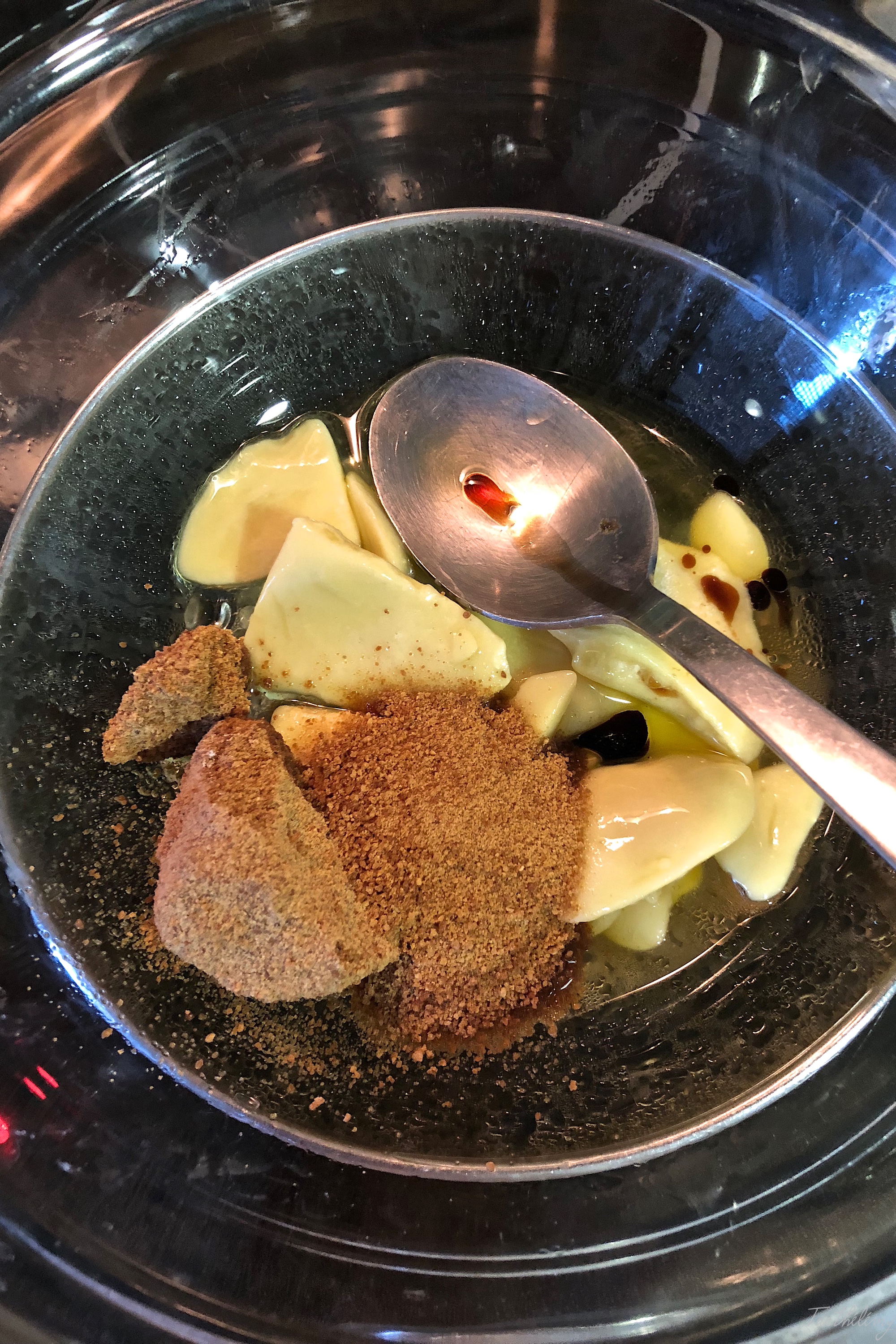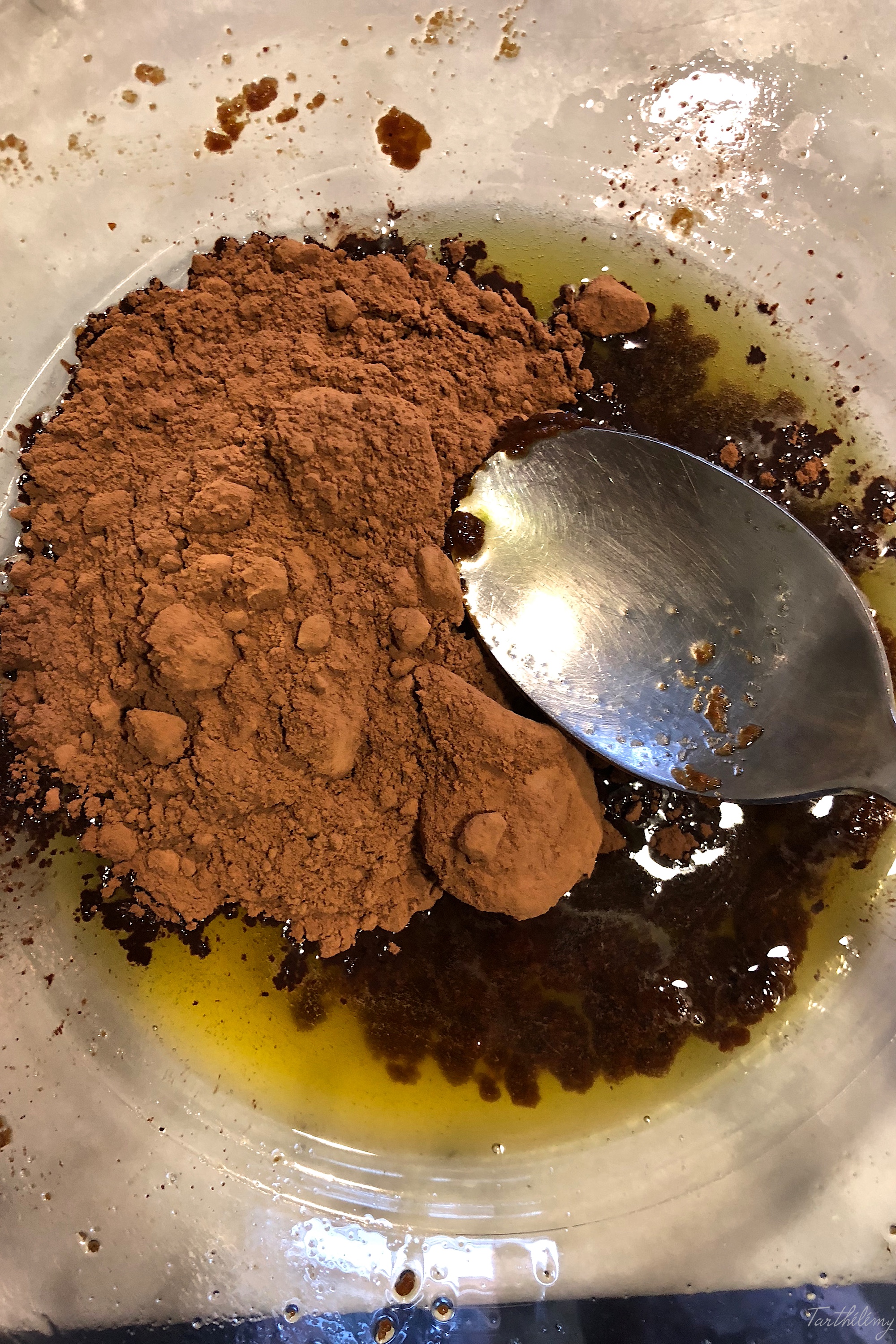 El principio es muy sencillo: hay que derretir la manteca de cacao a baño maría (a muy poca potencia para no sobrepasar los 40ºC), añadir azúcar de coco y vainilla, y un tipo de polvo que puede ser cacao crudo (para hacer chocolate negro) o leche en polvo (para hacer chocolate blanco; si queréis que sea vegano usar leche de coco en polvo).