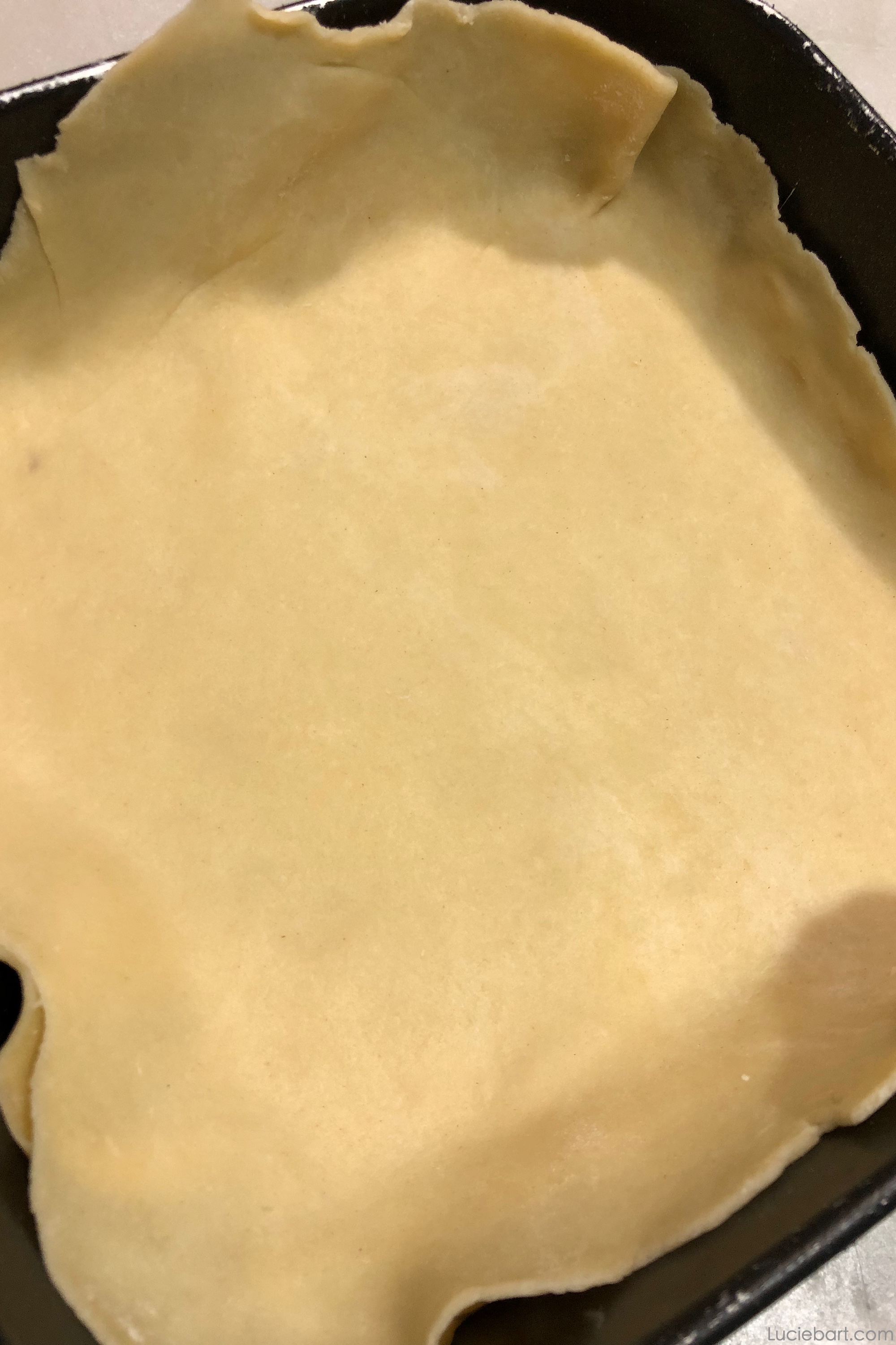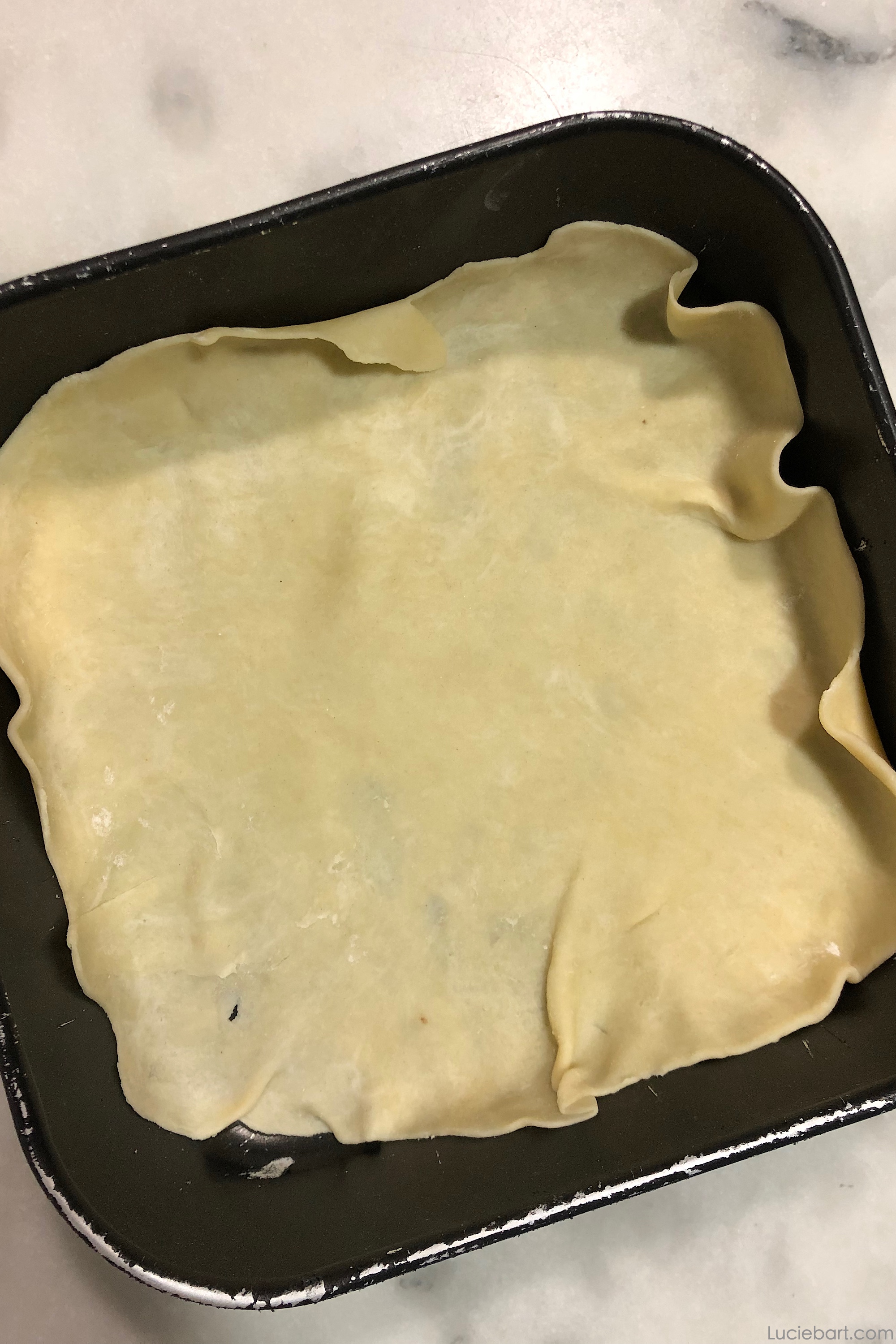 J’ai décidé de faire ma propre version entièrement faite maison et sans pâte filo, avec une pâte brisée maison. La pâte contient du beurre, vous n’avez donc pas besoin de la graisser avant de la cuire, ce qui nous permet de gagner un peu de temps 🙂