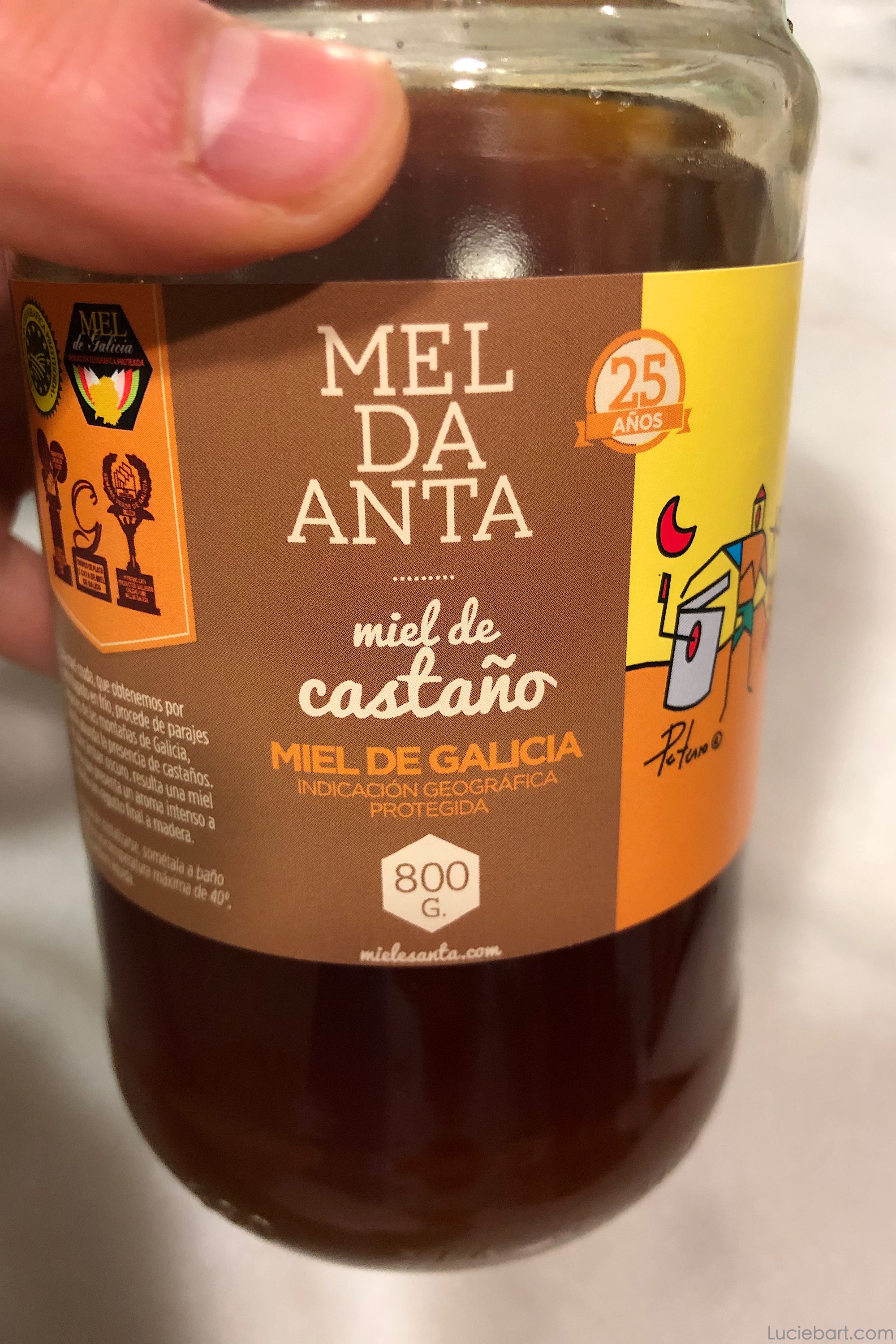 Ahora para el sirope que impregna el baklava no he usado cualquier cosa: tenía una miel de castaño gallega! La he mezclado con agua y un poco de azúcar avainillado antes de verter el sirope sobre el pastel recién horneado. La miel le da un toque especial, el resultado está para morirse!