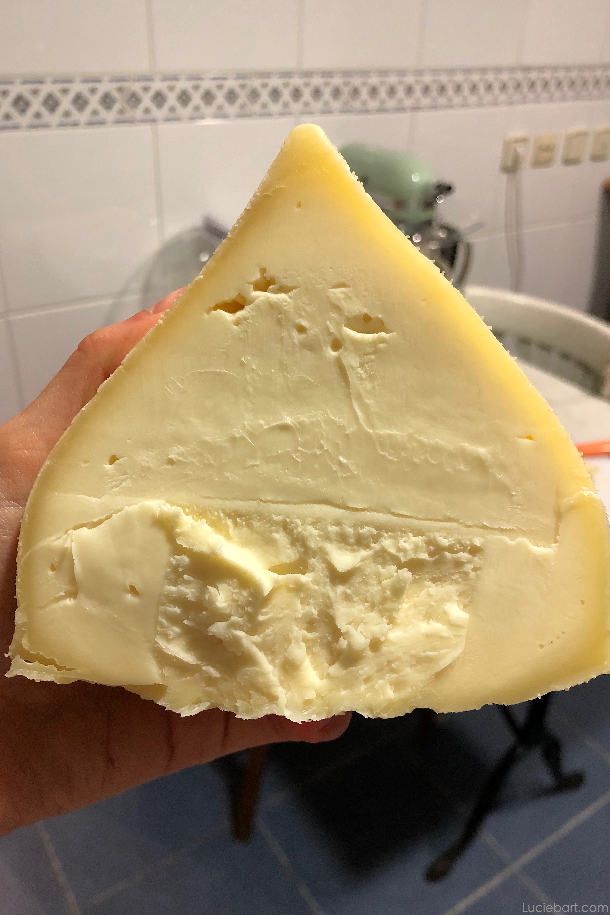 Es de los mejores que he hecho hasta ahora. No lleva huevos, sólo contiene nata para montar, queso Tetilla, miel de castaño, leche condensada azucarada, vainilla y trocitos de dulce de membrillo 🙂 No os podéis imaginar lo cremoso que está!
